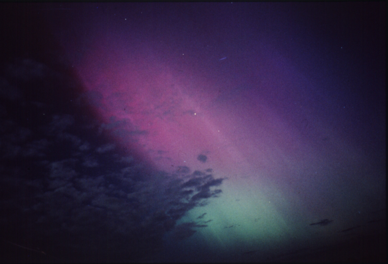 weißes Polarlicht zum Vorschein. Der Horizont war in schwach